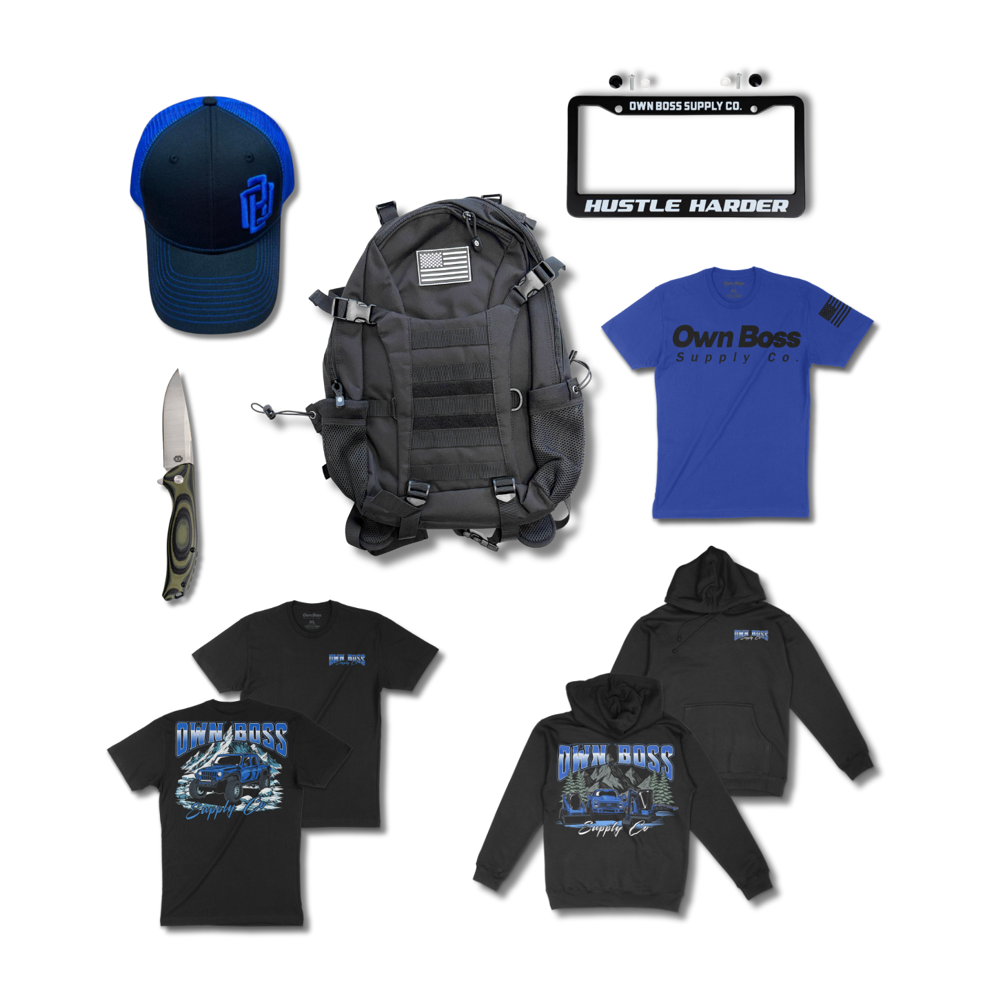 Here's your product description: The Ultimate OB41 Bundle is your all-in-one gear setup for whatever the day throws at you. Three versatile shirts keep you covered in style, while the everyday tactical backpack handles your essentials with room to spare. Top it off with a classic hat, secure your gear with a quality plate frame, and finish strong with a premium knife that's built to last. This isn't just a bundle—it's your complete toolkit for work, adventure, or just being ready for anything.